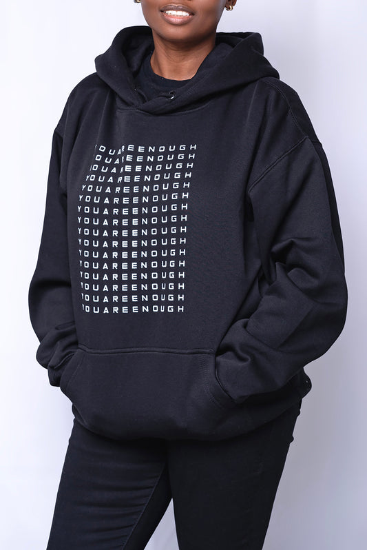 Everything on the t shirt and the writing makes you happy. The word makes you happy that you are enough.
